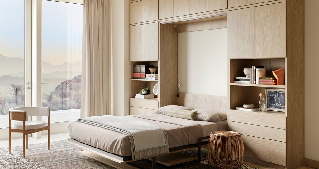 - Wardrobe style offers concealed storage